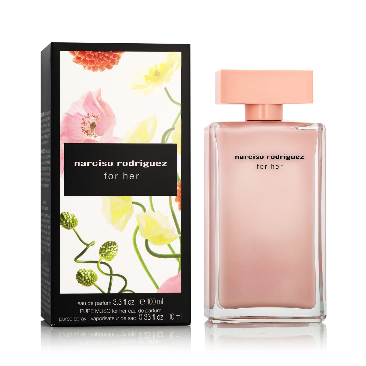 Narciso Rodriguez For Her kvepalai moterims skirti visoms žavėti ir gundyti norinčioms moterims. Juos sukurti Narciso Rodriguez įkvėpė egiptietiškas muskuso aliejus – šiltas ir šilkinis.Narciso Rodriguez For Her kvepalų moterims aromatas nuostabiai seksualus. Vyrauja geismą žadinantis muskuso kvapas, tai pat juntamas, apelsinų žiedų, kvepenių, ambros, vanilės ir kvapiųjų auksabarzdžių aromatas. Sudėtis: apelsinų žiedai, kvepenės, kvapioji medžiaga Amberlyn, vanilė, kvapieji auksabarzdžiai, brangi mediena, muskusas