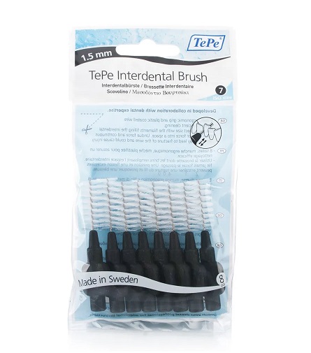 8 skirtingų dydžių šepetėliai su ergonomišku laikikliu ir plastiku padengta viela, užtikrina efektyvų tarpdančių valymą.